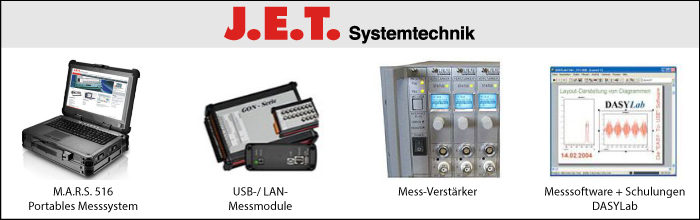 Die J.E.T. Systemtechnik GmbH, mit Sitz in Norderstedt, ist Ihr kompetenter Partner für rechnergestützte Messtechnik, Industrie-PCs und individuelle Softwarelösungen. Ihr Produktportfolio reicht von Mess- und Prüfsystemen über Messverstärker und Datenlogger bis hin zu Industrie-PCs mit aktueller Hardware. Herstellerunabhängige Beratung sowie hochwertige Komponenten aus deutscher Entwicklung stehen im Zentrum.
